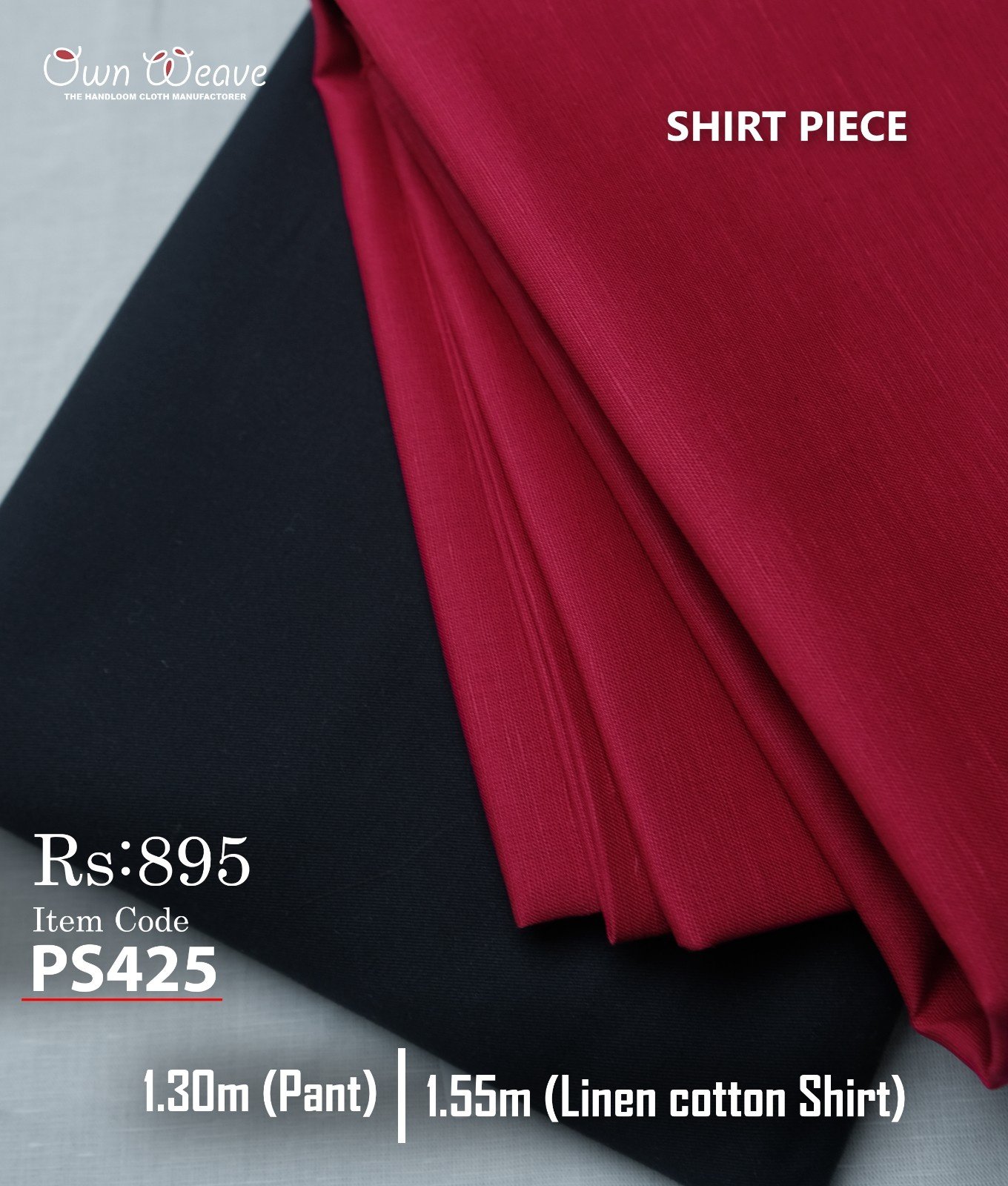 Shirt & Pant PC Combo Set – This combo includes 1.50 meters shirt piece, suitable for stitching XL full sleeve and XXL half sleeve shirts, and 1.30 meters pant piece, ideal for tailoring comfortable and well-fitted pants. Perfect for custom stitching to match your style and size.