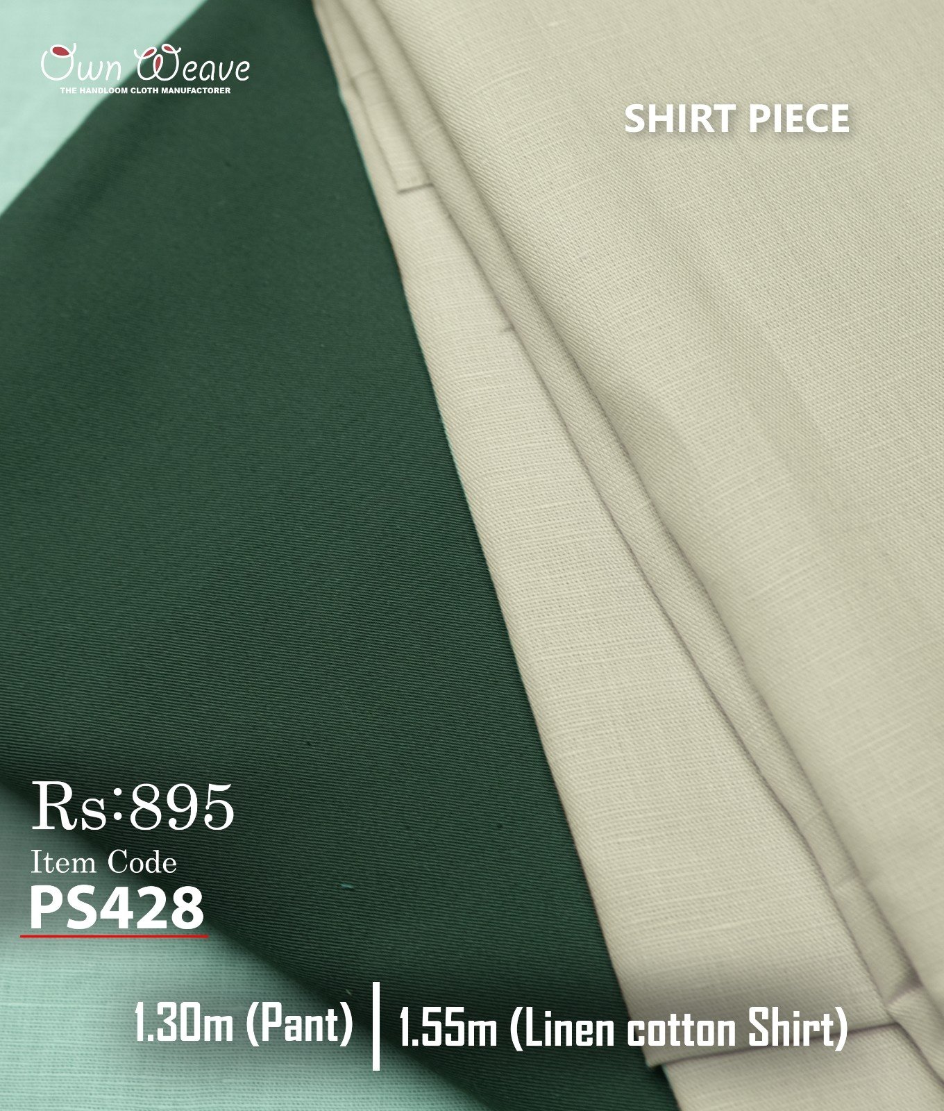 Shirt & Pant PC Combo Set – This combo includes 1.50 meters shirt piece, suitable for stitching XL full sleeve and XXL half sleeve shirts, and 1.30 meters pant piece, ideal for tailoring comfortable and well-fitted pants. Perfect for custom stitching to match your style and size.