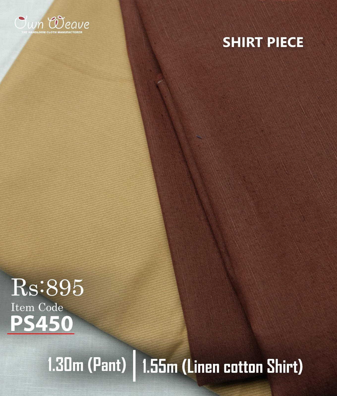 Shirt & Pant PC Combo Set – This combo includes 1.50 meters shirt piece, suitable for stitching XL full sleeve and XXL half sleeve shirts, and 1.30 meters pant piece, ideal for tailoring comfortable and well-fitted pants. Perfect for custom stitching to match your style and size.